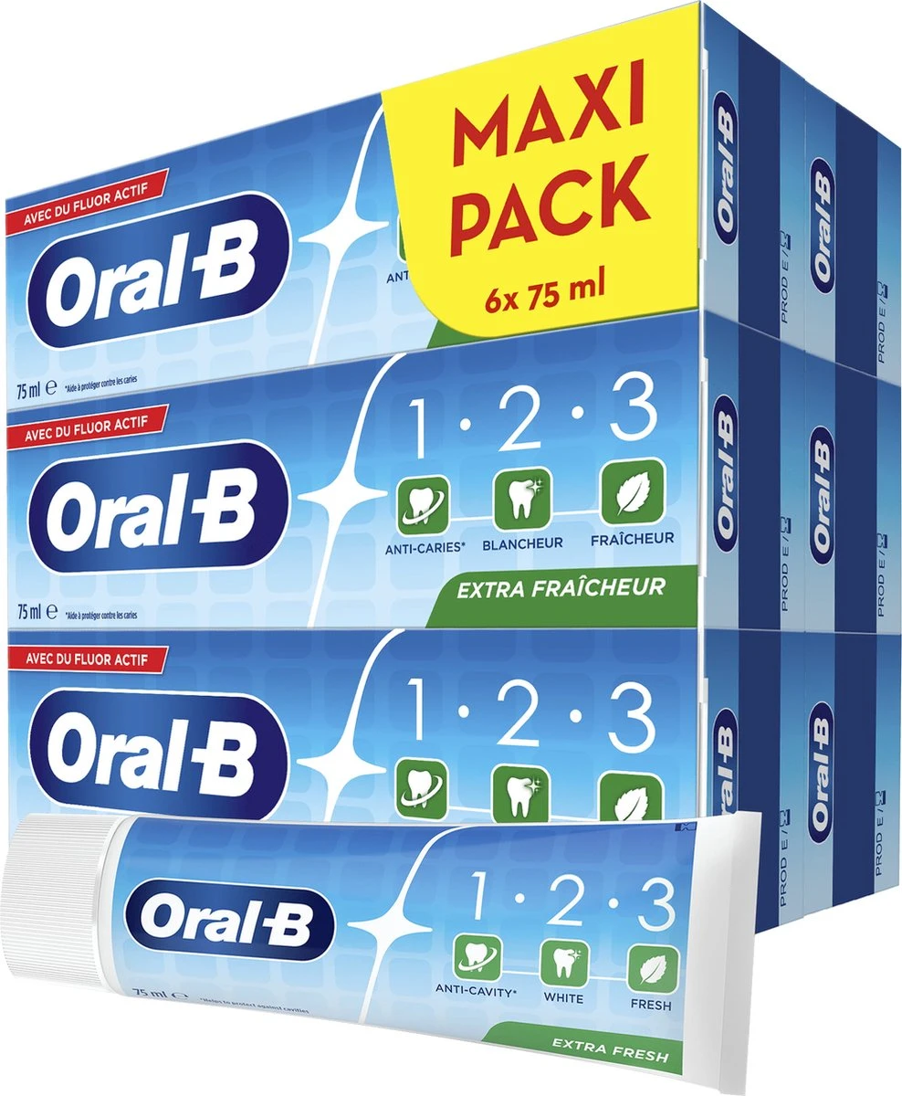 Oral-B 1.2.3 tandpasta is ideaal voor het hele gezin en biedt bescherming tegen gaatjes en voorkomt tandbederf.